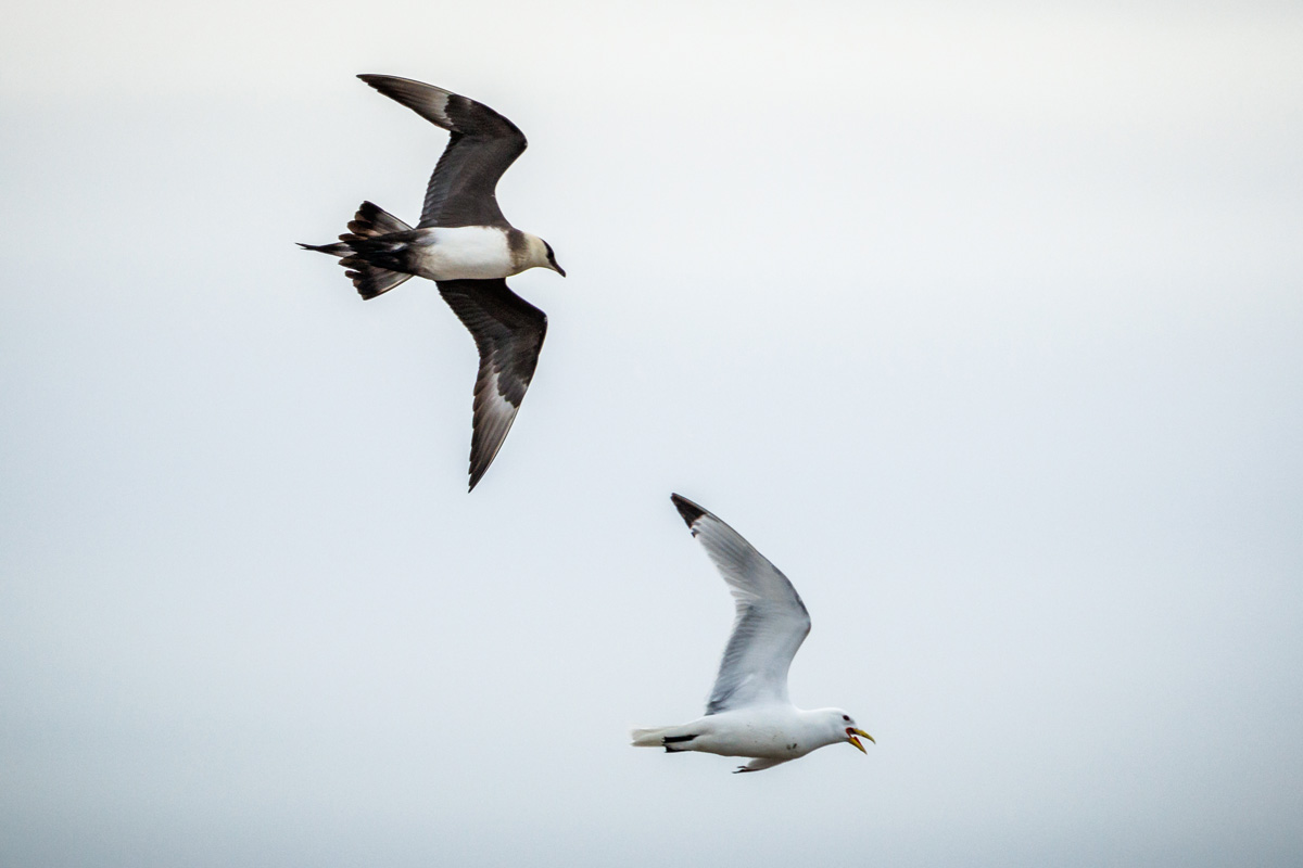 Their diet mainly consists of fish, small birds, and insects. However, they are best known for kleptoparasitism – stealing food from other seabirds in mid-air. They aggressively chase these birds, such as terns, gulls, and puffins, forcing them to drop their food so they can steal it. This daring behaviour has earned them the names “parasitic jaeger” and “pirates of the sea”.