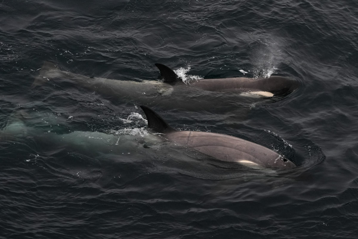 Orca pod seen in Bransfield, near the north tip of the Antarctic Peninsula and South Shetland Islands.