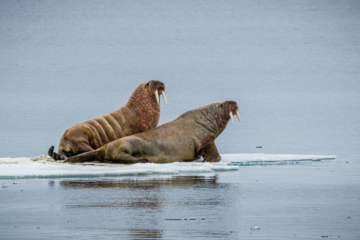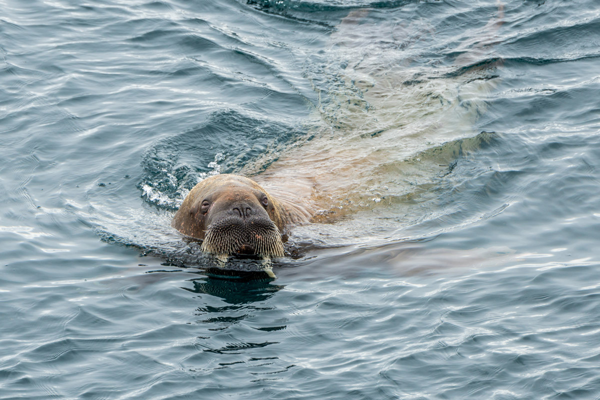 Walruses are generally not aggressive towards humans, but can be very dangerous when threatened. They utilise their tusks for defense and can fight off polar bears and other threats. Although most encounters assume that these seals are non-aggressive, they should always be approached carefully. When we come across one, we follow strict distancing rules. These animals are always handled with the highest caution.