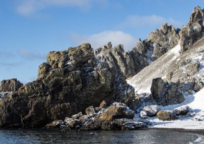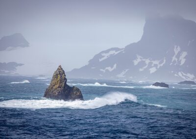 This archipelago represents the northernmost tip of Antarctica, standing proud against the relentless force of the Southern Ocean. The ice-capped peaks of Livingstone, Greenwich, and King George Islands offer a stunning backdrop to explore. And despite the furious elements, the islands boast a remarkable richness of wildlife, with numerous colonies of Gentoo and Chinstrap Penguins dotting the island shores, accompanied by an array of formidable seabirds like the predatory Giant Petrels. Weather permitting, we’ll explore the eerie landscape of Deception Island, an active volcanic crater with black steaming sands and rusting ruins, immerse ourselves in the history of Yankee Harbour, once a vital anchorage for sealers.