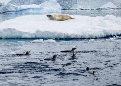 On to the Antarctic Peninsula, where we’ll explore any number of stunning bays and famed landing sites, maneuvering through majestic channels as we continue to navigate these wildlife-rich waters, passing any number of glorious icebergs, on our way to historic landing sites and perhaps even an active scientific base. Of course, a spectacular highlight of this voyage is the likelihood of encountering the giant Humpback whale – or many of them! – feeding on the abundance of krill in the water this time of year. Orcas and Minkes are also common sightings, as are a variety of penguins and seals.