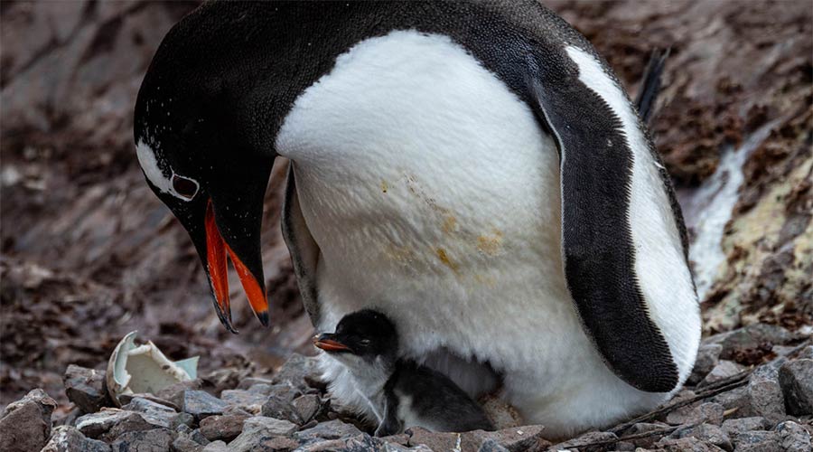 This archipelago represents the northernmost tip of Antarctica, standing proud against the relentless force of the Southern Ocean. The ice-capped peaks of Livingstone, Greenwich, and King George Islands offer a stunning backdrop to explore. And despite the furious elements, the islands boast a remarkable richness of wildlife, with numerous colonies of Gentoo and Chinstrap Penguins dotting the island shores, accompanied by an array of formidable seabirds like the predatory Giant Petrels. Weather permitting, we’ll explore the eerie landscape of Deception Island, an active volcanic crater with black steaming sands and rusting ruins, and immerse ourselves in the history of Yankee Harbour, once a vital anchorage for sealers.