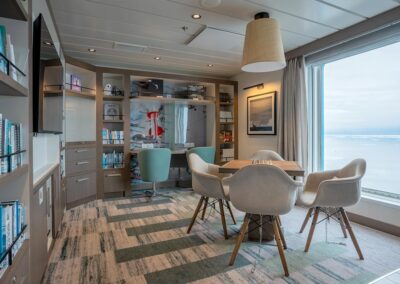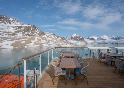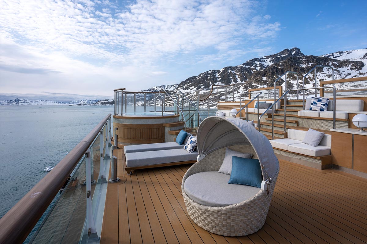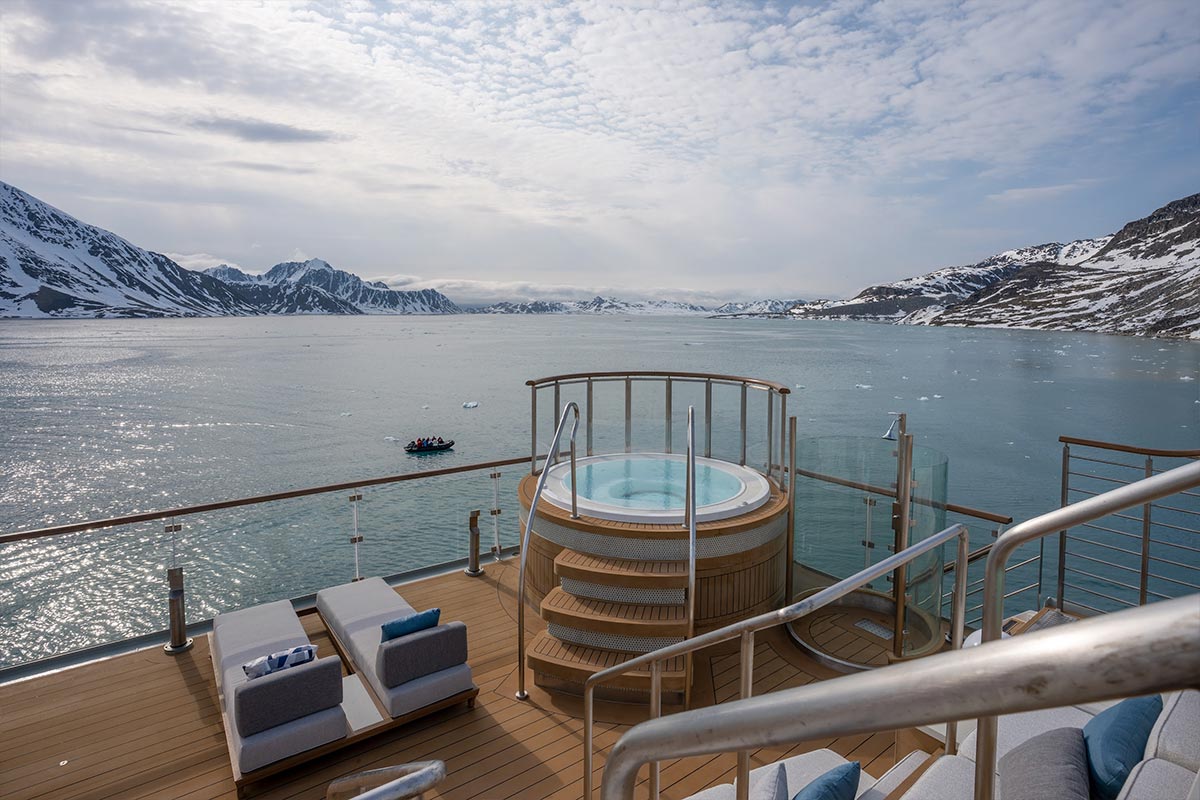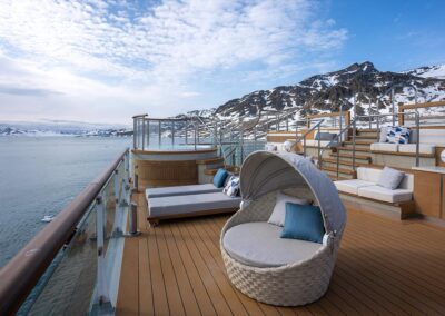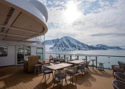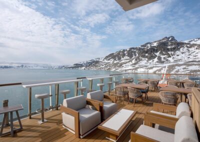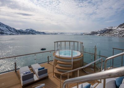 The Ocean Albatros is designed to keep Antarctica front and center, from wake-up to lights out. Every stateroom provides a generous view, and most include private balconies. A variety of observation decks are accessible from multiple indoor spaces. Two hydraulic platforms can be lowered to offer unprecedented near-water-level views – and rare photograph opportunities. Even the two outdoor Jacuzzis provide 360 views of the mesmerizing landscape that surrounds you.