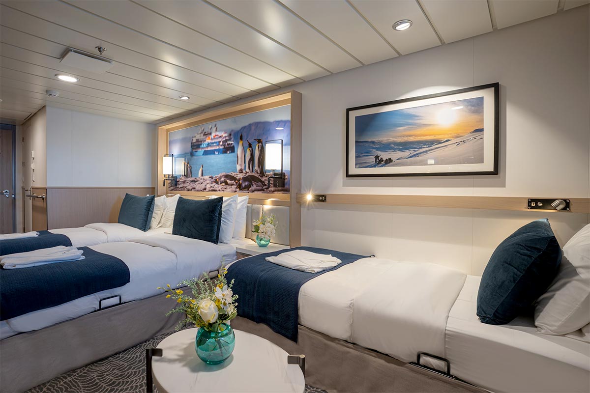 The futuristic X-Bow design of the Ocean Albatros is more than just eye-catching. It’s also Antarctica-maximizing, designed for total comfort and safety in even the roughest seas. And its superior 1A ice rating and Polar Class 6 mean it can push through deeper ice and deliver access to ever more remote and elusive areas. Onboard, spacious rooms, everywhere visibility, and seamless access to zodiacs (and the adventures to follow) all join forces to ensure a one-of-a-kind experience that will exceed your highest expectations.